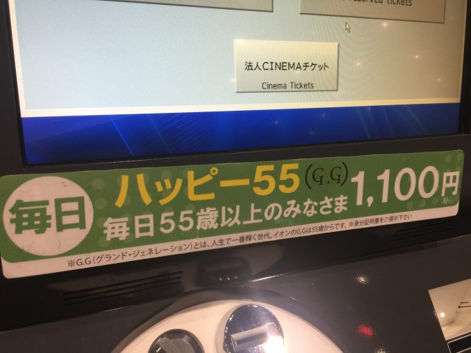 AEONには他に、夫婦50割引とかいって、どっちかが50歳のご夫婦は2200円でOK、という不思議なシステムもあったりします。